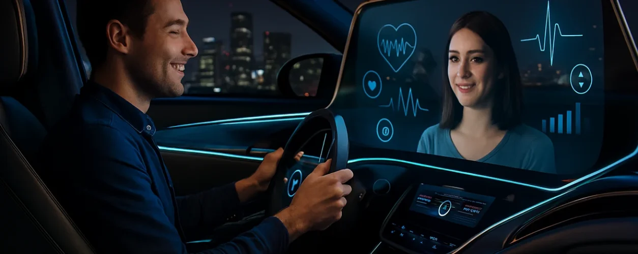 O tom da sua voz, a expressão do seu rosto, até os pequenos gestos das mãos são interpretados por câmeras e sensores inteligentes. De repente, ele ajusta a temperatura, escolhe uma playlist que combina com seu humor e, se perceber sinais de cansaço ou que você consumiu álcool, simplesmente não deixa o carro sair da garagem.