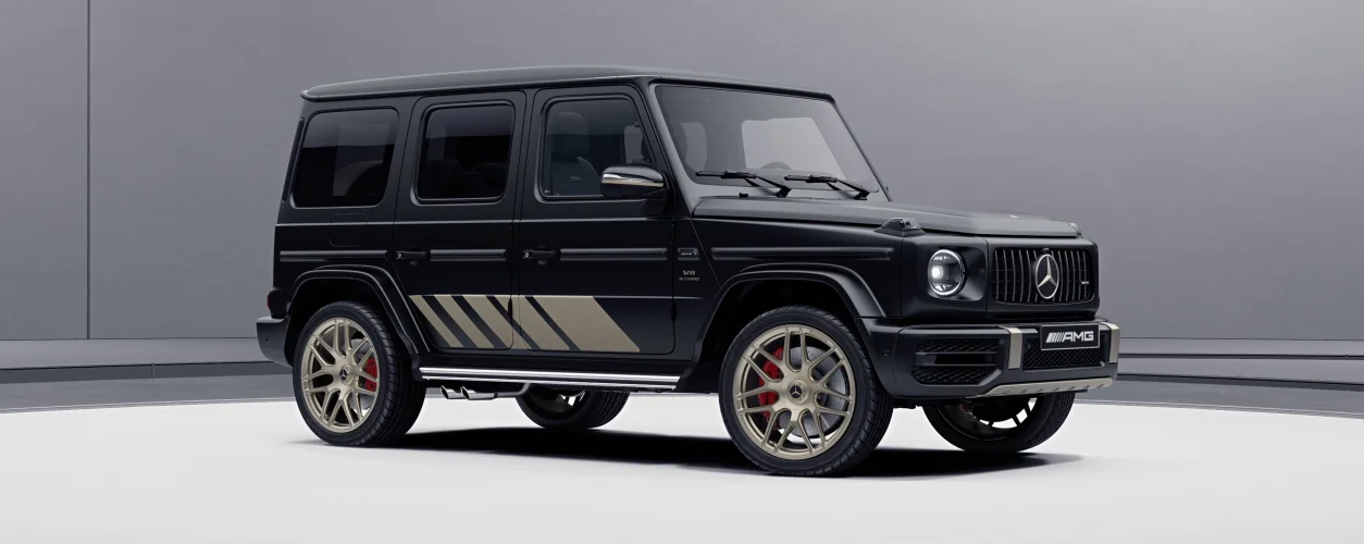 Nessa configuração, que é R$ 315 mil mais cara que a versão G63 "padrão" (R$ 1,93 milhão), o modelo recebe elementos de design exclusivos, como os decalques em tom "Kalahari Gold" nas laterais. A cor também aparece no protetor do estepe, nas rodas de liga aro 22, nos emblemas, nos retrovisores e em detalhes nos para-choques.