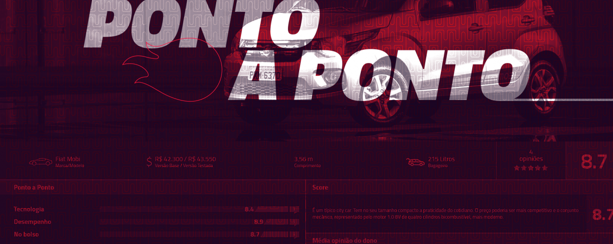 Traduzindo, o carro tem que atender bem as principais características de sua proposta. Uma minivan, por exemplo, deve atender a demanda de uma família. Ser um carro espaçoso e ter vários porta-trecos. Entendeu? Pensando nisso, bolamos cinco quesitos. São eles: No Bolso, que traz notas sobre - preço, consumo, itens de série, seguro, revisão e garantia; Vida a bordo, que analisa ergonomia, espaço interno, porta-malas, conforto e acabamento; Performance – que é voltado para pontos de dinâmica, motor e câmbio; Tecnologia, que avalia central multimídia, conectividade, experiência do usuário, assistências e segurança e Opinião do repórter, que dá um toque do jornalista especializado que realizou o teste.