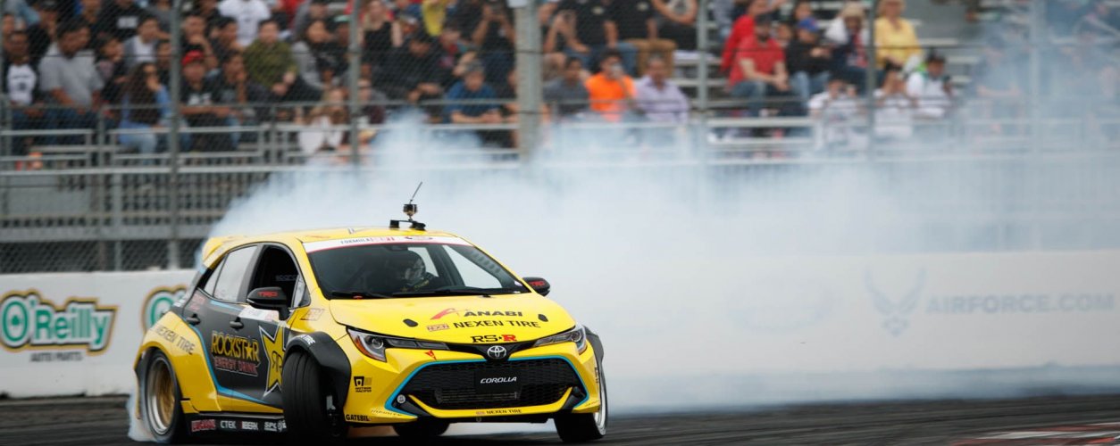 E o começo do Corolla preparado foi promissor. Com Frederic Aasbo ao volante, garantiu o primeiro lugar em sua classe na etapa inaugural da Fórmula Drift que aconteceu em Long Beach, nos Estados Unidos.