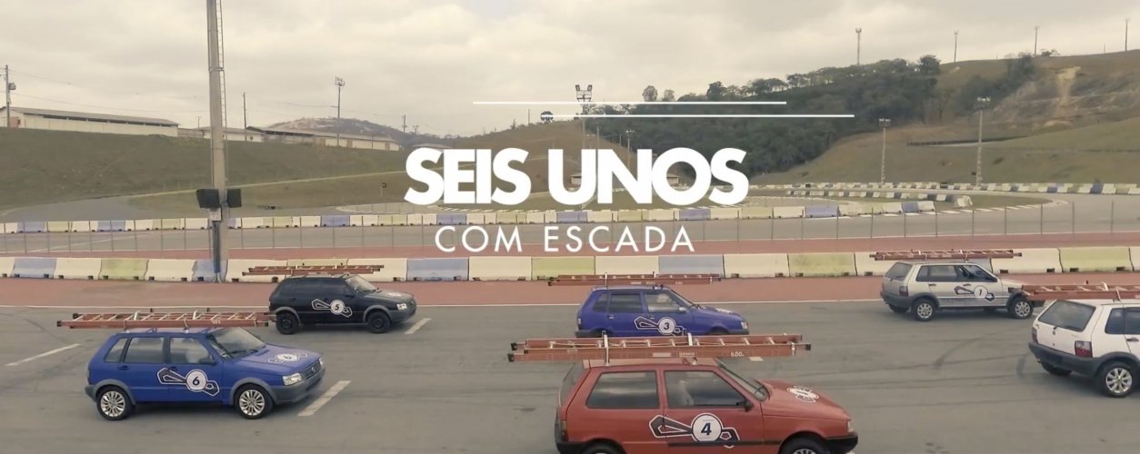 A corrida com os Unos, aqueles quadradinhos, que nos últimos anos eram chamados de Mille e saíram de linha no fim de 2013, é uma brincadeira com os "memes" de internet que viralizaram rapidamente, relacionando o compacto a "carro de firma", um dos preferidos por empresas de telefonia, por exemplo - que sempre circulam com uma escada presa a um suporte de teto.