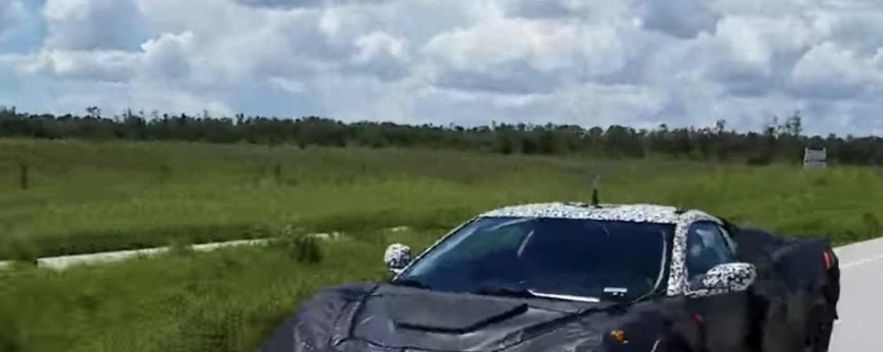 Outro vídeo mostra o Corvette camuflado rodando em uma estrada pública - o passageiro de um carro fez as imagens quando percebeu o protótipo camuflado rodando ao seu lado na rodovia e conseguiu gravar o Chevrolet de frente e também a lateral.