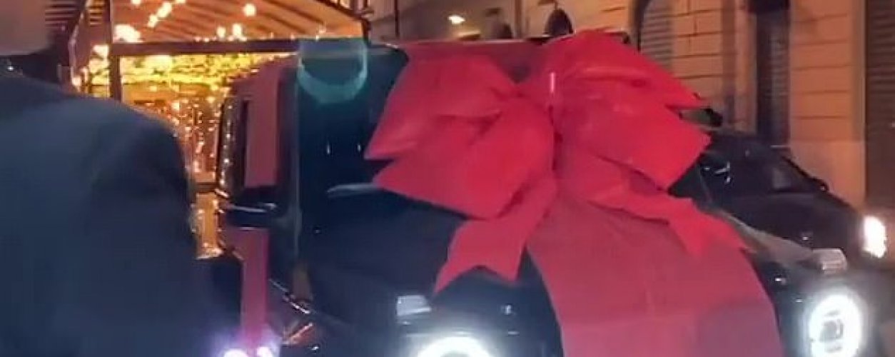 O esportivo estava estacionado na porta do restaurante, com direito a um enorme laço vermelho no teto. No post publicado no Instagram de Georgina, o atacante da Juventus parece ter sido surpreendido com o carro.