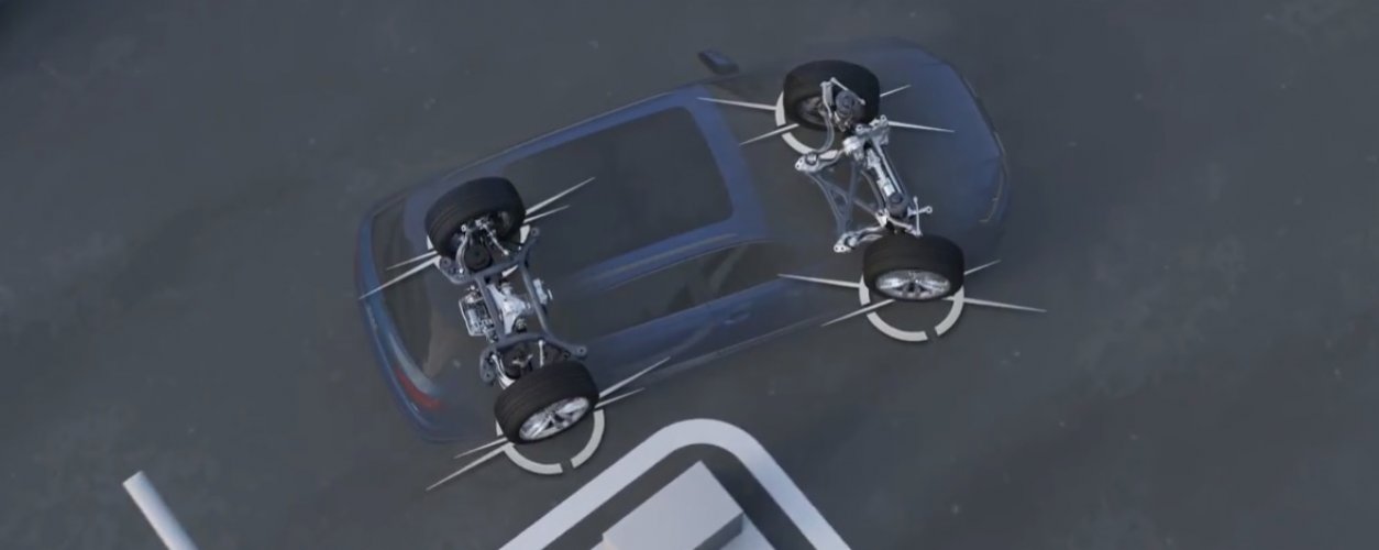 Já em velocidades maiores, o eixo traseiro direcional movimenta as rodas traseiras no mesmo sentido das dianteiras. Com isso, o carro oferece maior estabilidade e dirigibilidade, seja em uma curva ou em uma manobra mais brusca na estrada. Detalhe que, conforme a situação, as rodas de trás podem se mover tanto para um lado como para o outro.