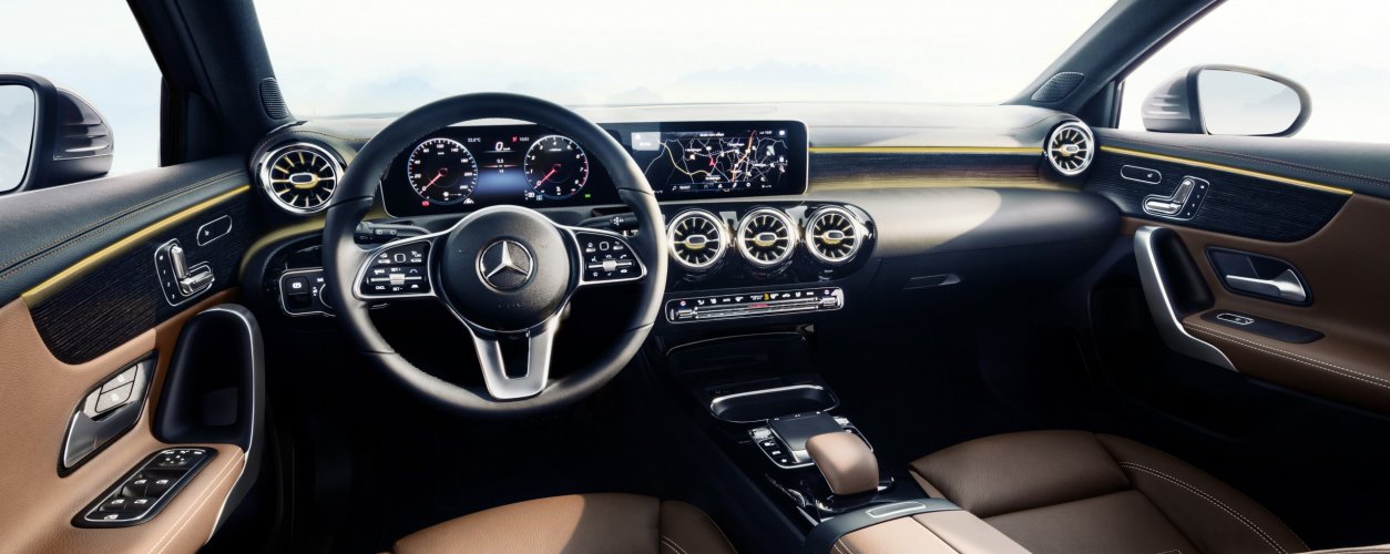 A Mercedes-Benz mudou drasticamente o interior do novo Classe A. Imagens divulgadas pela montadora mostram que a quarta geração do hatch terá duas grandes telas de TFT para ilustrar o painel de instrumentos e a central multimídia, algo já presente em modelos mais caros da marca, além de acabamento misturando materiais como madeira, alumínio e black piano.