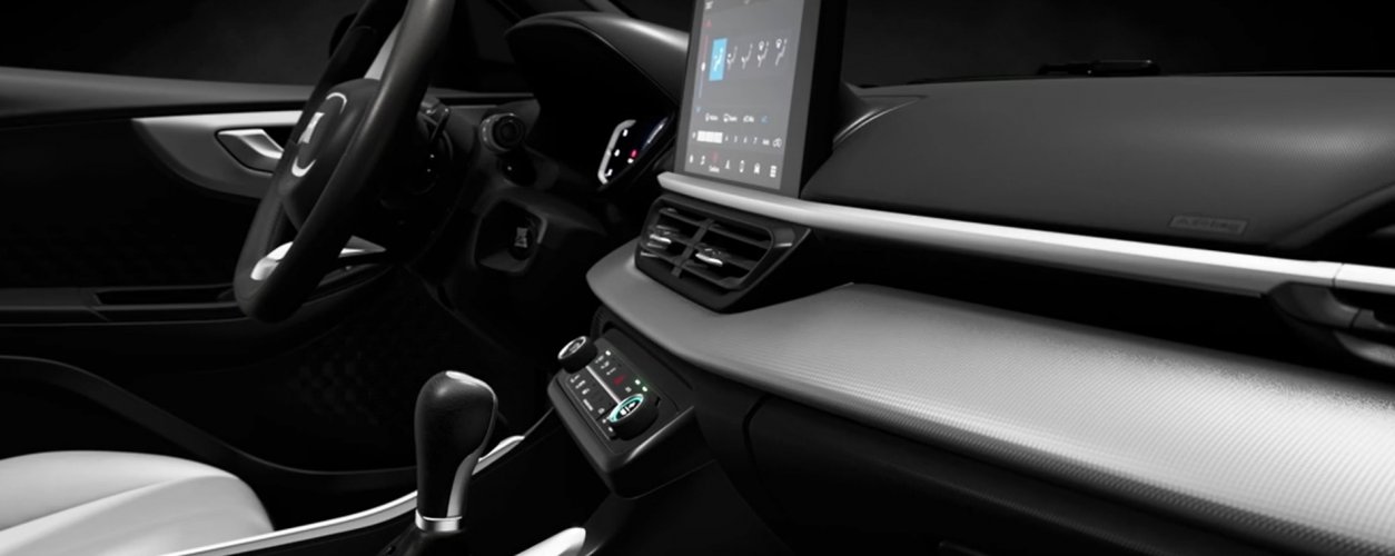 Outros destaques são o volante multifuncional e com base reta, o painel digital em tela de TFT, a tela do sistema multimídia, que é centralizada e do tipo flutuante, e o ar-condicionado digital.