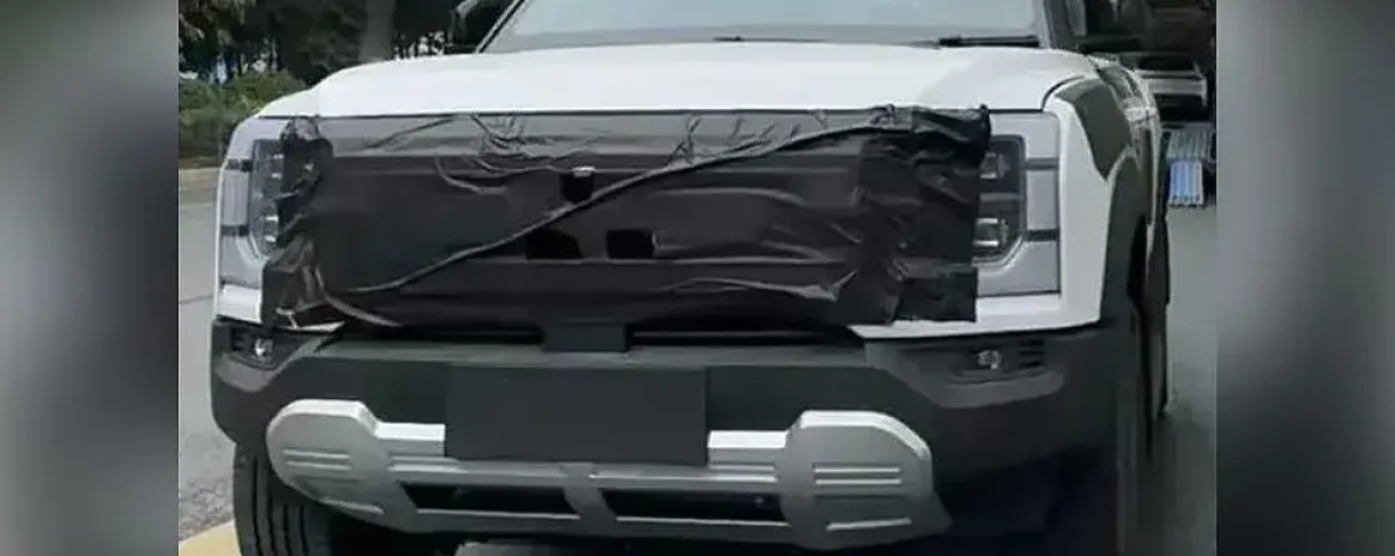 À primeira vista, a picape da BYD lembra a Ford Ranger com seu visual quadradão e faróis, que apesar de camuflados, dão a impressão de ter o mesmo formato em "C".