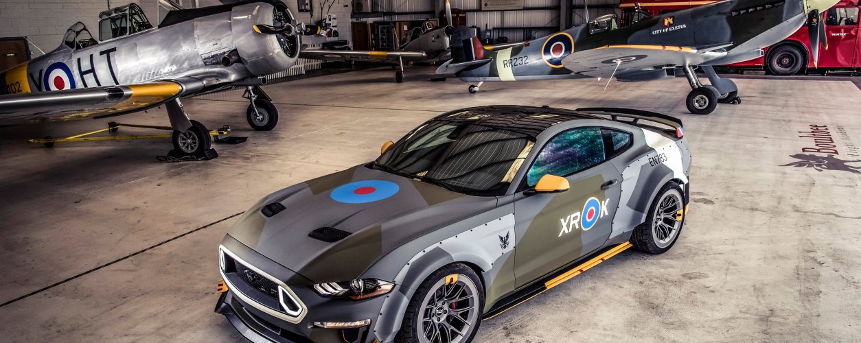 A Royal Air Force (RAF) ou Força Aérea Britânica completa 100 anos em 2018. E para comemorar a efeméride dos Eagles, como eram chamados, a Ford criou um Mustang especial e único. Feito em parceria com a customizadora Gittin’s RTR Vehicles, do campeão da Fórmula Drift, Vaughn Gittin Jr., o Eagle Squadron Mustang GT é inspirado nos aviões Spitfire, P-47 Thunderbolts, e P-51 Mustang usados durante a Segunda Guerra Mundial contra a Força Aérea Alemã, a Luftwaffe. Os Estados Unidos eram aliados do Reino Unido na guerra.