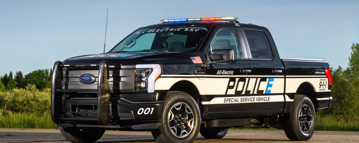 Os fabricantes de automóveis dos Estados Unidos têm tradição de criar versões especiais de veículos de produção especificamente para uso policial - e o avanço dos carros elétricos não foi capaz de acabar com esse padrão. A Ford, por exemplo, apresentou recentemente a F-150 Lightning Pro SSV.
