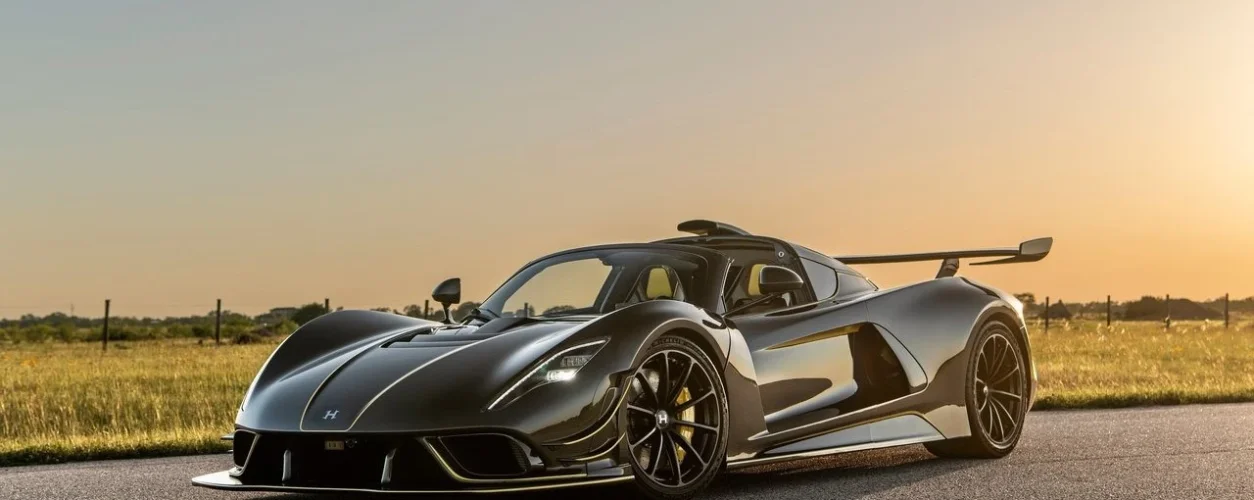 Assim como a versão cupê, o roadster tem uma série de componentes em fibra de carbono. O chassi é feito com o material super leve e outras partes da carroceria também. O teto removível, segundo a Hennesey, pesa apenas 18 quilos, o que torna sua remoção bem fácil.