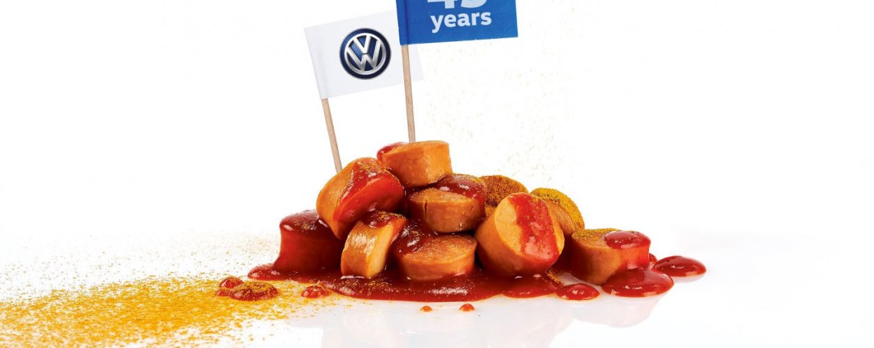 As salsichas acabam de completar 45 anos de produção, fabricadas na planta de Wolfsburg, na Alemanha, sede da marca, desde 1973. O alimento é servido na cafeteria das fábricas européias da companhia, para refeição dos funcionários, e tem até código na lista de peças da Volks. Elas também são vendidas em lojas de conveniência e outros estabelecimentos no mercado alemão e costumam ser oferecidas como brinde a clientes nas concessionárias VW daquele país.