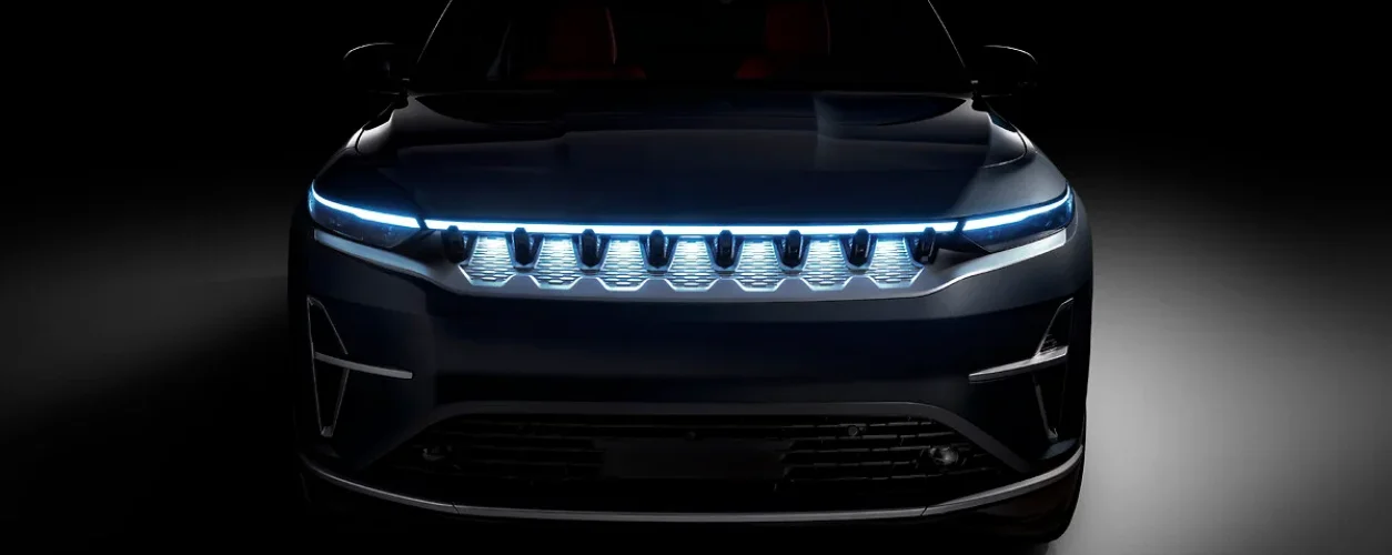 O teaser em vídeo foi divulgado no YouTube Shorts e - só para variar - mostra pouquíssimos detalhes do novo SUV elétrico. Pelo menos a dianteira está bem clara. O Wagoneer S terá a tradicional grade Jeep com sete aberturas, porém com uma iluminação decorativa em LED. É um elemento estético muito comum nos carros elétricos.
