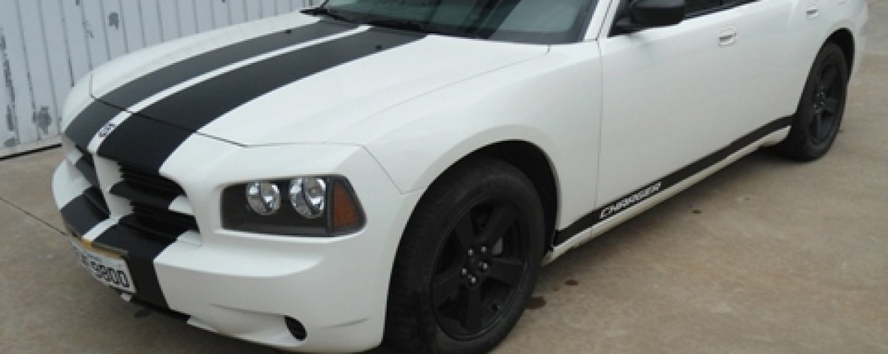 O painel informa que o Charger tem 20.126 quilômetros rodados. A unidade que tem pintura branca com faixas pretas tem motor HEMI 5.7 V8 de 370 cv e transmissão automática de cinco velocidades.