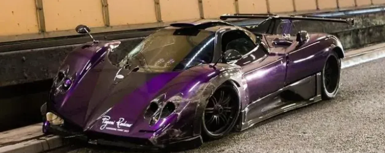As imagens do carro destruído sobre o caminhão plataforma foram postadas no perfil do fotógrafo Ethan Gale (@ethang.supercarphotographe). Os dois lados do Zonda ficaram muito danificados. Além da carroceria, toda a parte de suspensão do Pagani ficou avariada com as pancadas.