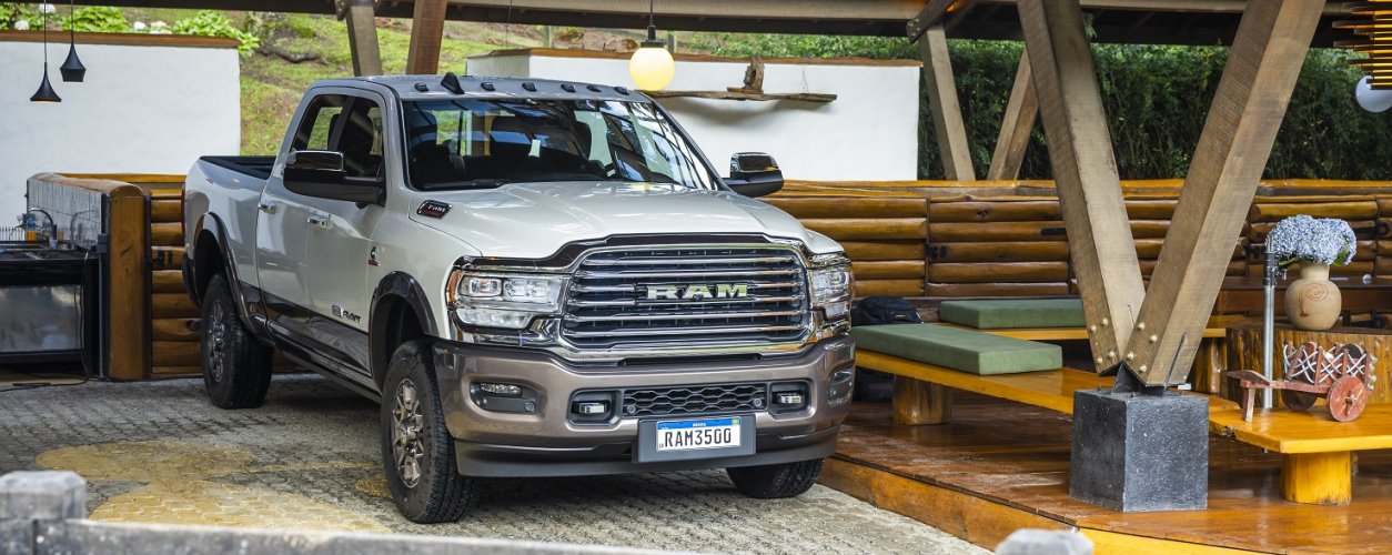 Ela tem 6,06 metros de comprimento, 117,2 kgf.m de torque e capacidade de rebocar 9 toneladas. Esses são alguns dos predicados da RAM 3500, a maior e mais luxuosa picape do Brasil. O modelo chega importado do México em três versões que variam entre R$ 484.990 (versão Laramie) e R$ 529.900 (Limited Longhorn).