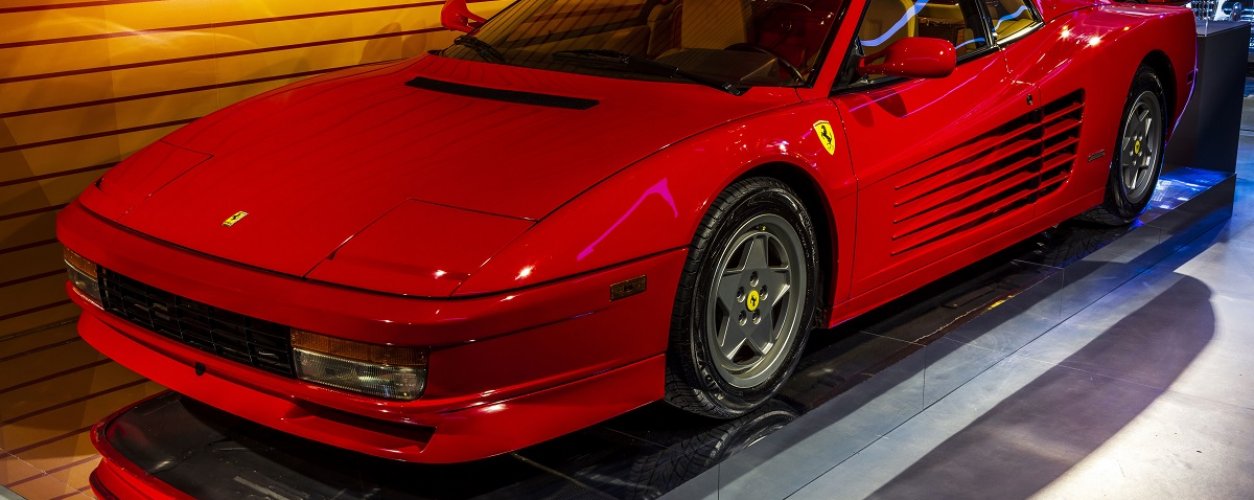 Outra máquina da marca do cavalinho rampante que fez sucesso por suas linhas marcantes, uma década de pois, foi a Testarossa. E um modelo 1988 dela está lá para o deleite dos visitantes.