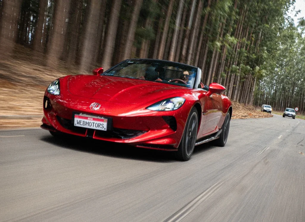 O MG Cyberster é o destaque do trio. Com visual arrojado e portas tipo tesoura, o conversível elétrico entrega 510 cv e 73,9 kgfm de torque (725 Nm), acelera de zero a 100 km/h em apenas 3,2 segundos.
