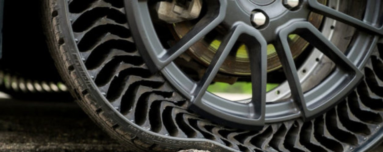 A história não chega a ser inédita. Em 2009, a Michelin apresentou o Tweel. Um pneu que não precisava de ar para funcionar. Ele existe até hoje, mas só é utilizado em máquinas pesadas para trabalho e nunca chegou a nenhum veículo de produção.