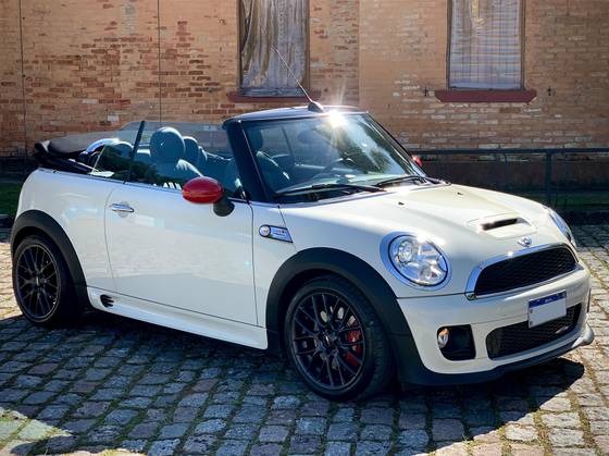 Já no caso do Mini JCW Cabrio são 12 opções de cores e 2 opções para a capota, que é padrão na cor preta, mas há também a opção "Mini Yours", que tem clara referência à origem britânica. Por dentro, o modelo tem como opção única a combinação de preto com detalhes em vermelho.