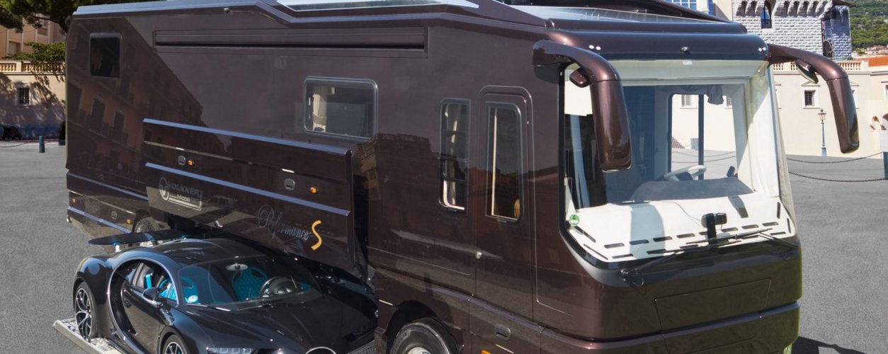 A fabricante de motorhomes de luxo Volkner utilizou um Bugatti Chiron para apresentar o seu último lançamento, o Mobil Performance S. Entre tantos mimos para os ocupantes, o veículo possui uma garagem adaptada para levar o hiperesportivo nas viagens.