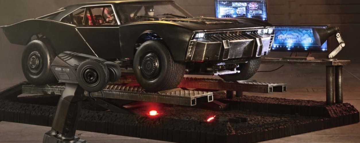 Comandado por controle remoto, a réplica em escala 1:10 é dotada de tração traseira e suspensão funcional. A miniatura do novo Batmóvel também traz um boneco móvel do super-herói, que vira o volante e faz mudanças de marchas na alavanca de câmbio.