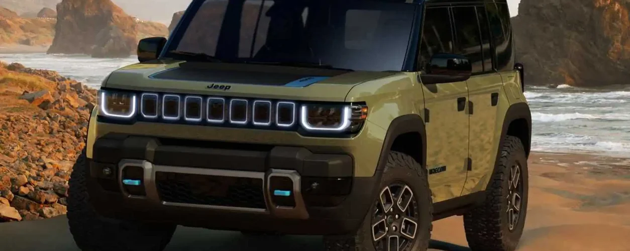 O Recon EV deverá ter dois motores elétricos, que juntos produzirão cerca de 400 cv. Já as versões mais completas poderão chegar nos 600 cv. O visual é meio quadradão e remete ao do Renegade. Mas o elétrico deverá ser até mais apto ao off-road, já que terá portas removíveis, entre outros baratos.