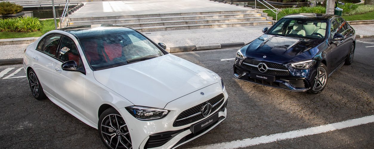 Ambas as versões trabalham com o câmbio automático de nove marchas. No C 200 AMG Line, o 1.5 turbo entrega 204 cv de potência, 30,6 kgf.m a 1.800 rpm e promete 0 a 100 km/h em 7,3 segundos. No C 300 AMG Line, o 2.0 gera 258 cv, 40,8 kgf.m a partir de 2.000 rpm e 0-100 km/h em 6 segundos cravados, conforme dados da Mercedes.
