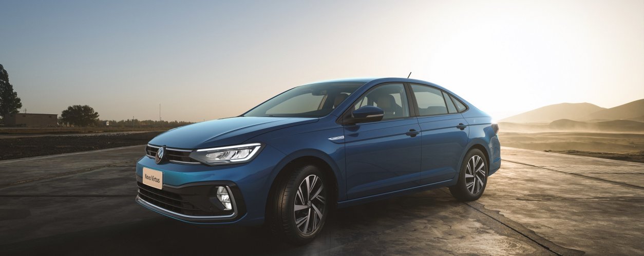A versão de entrada do novo Virtus é a TSI manual. Tem seis airbags, painel digital de oito polegadas, faróis e lanternas com LEDs, rodas de liga leve de 15 polegadas, multimídia Composition Touch, carregador de celular por indução, monitor de pressão dos pneus e sensor de estacionamento traseiro.