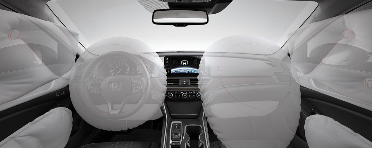 Os dois airbags que ajudam na proteção do motorista e passageiro da frente normalmente ficam instalados, respectivamente, no volante e no lado direito do painel, acima do porta-luvas. Eles têm a função de evitar o impacto do corpo dos ocupantes com parte rígidas do habitáculo na hora de uma colisão. Para identificá-los basta visualizar a inscrição "airbag" no centro da direção e no painel de instrumentos ao lado do passageiro.