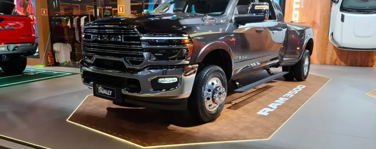 No entanto, no espaço da marca de caminhonetes de origem norte-americana no Distrito Anhembi, onde até o dia 30 de novembro acontece o maior evento automotivo do Brasil este ano, uma outra grandalhona rouba a cena. Aliás, grandalhona é pouco para descrevê-la. Gigantesca talvez seja mais adequado. Estamos falando da Ram 3500 Limited Longhorn Mega Cab Dually.