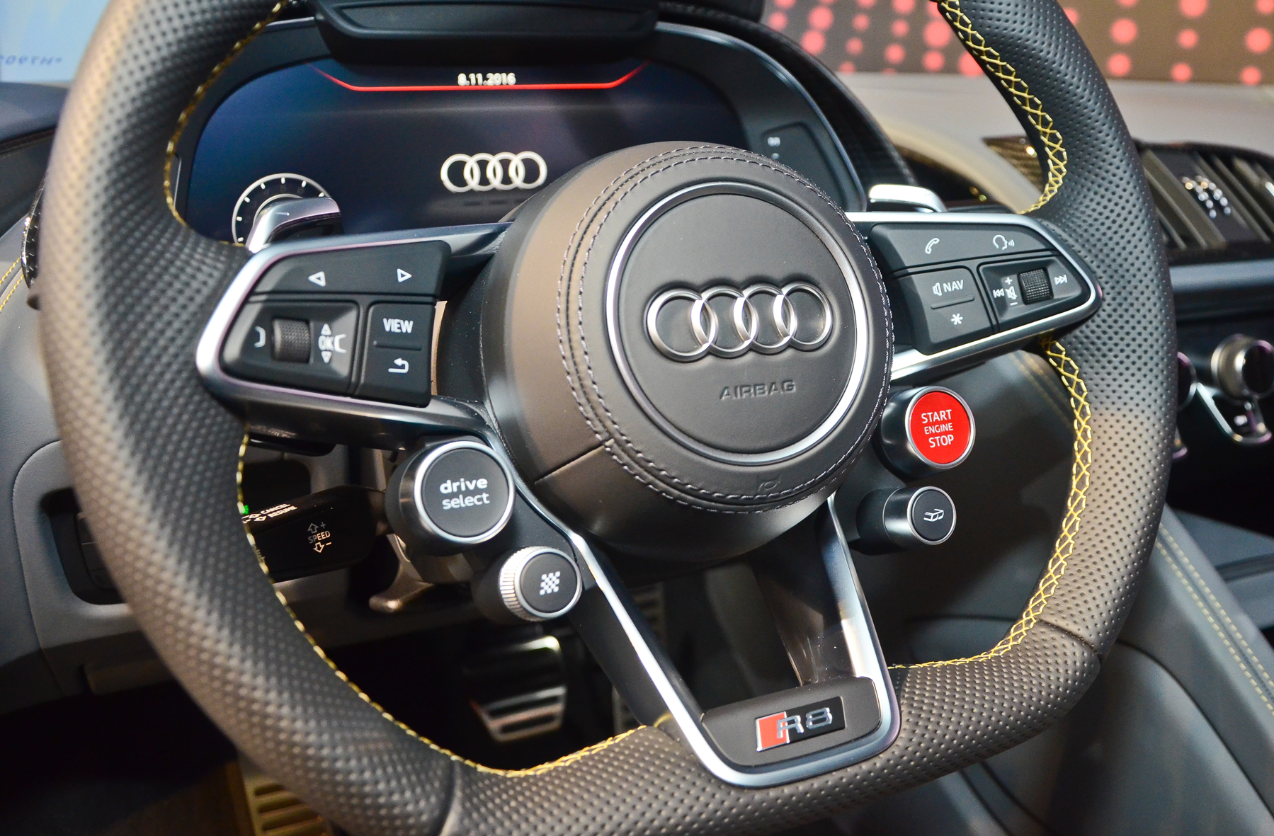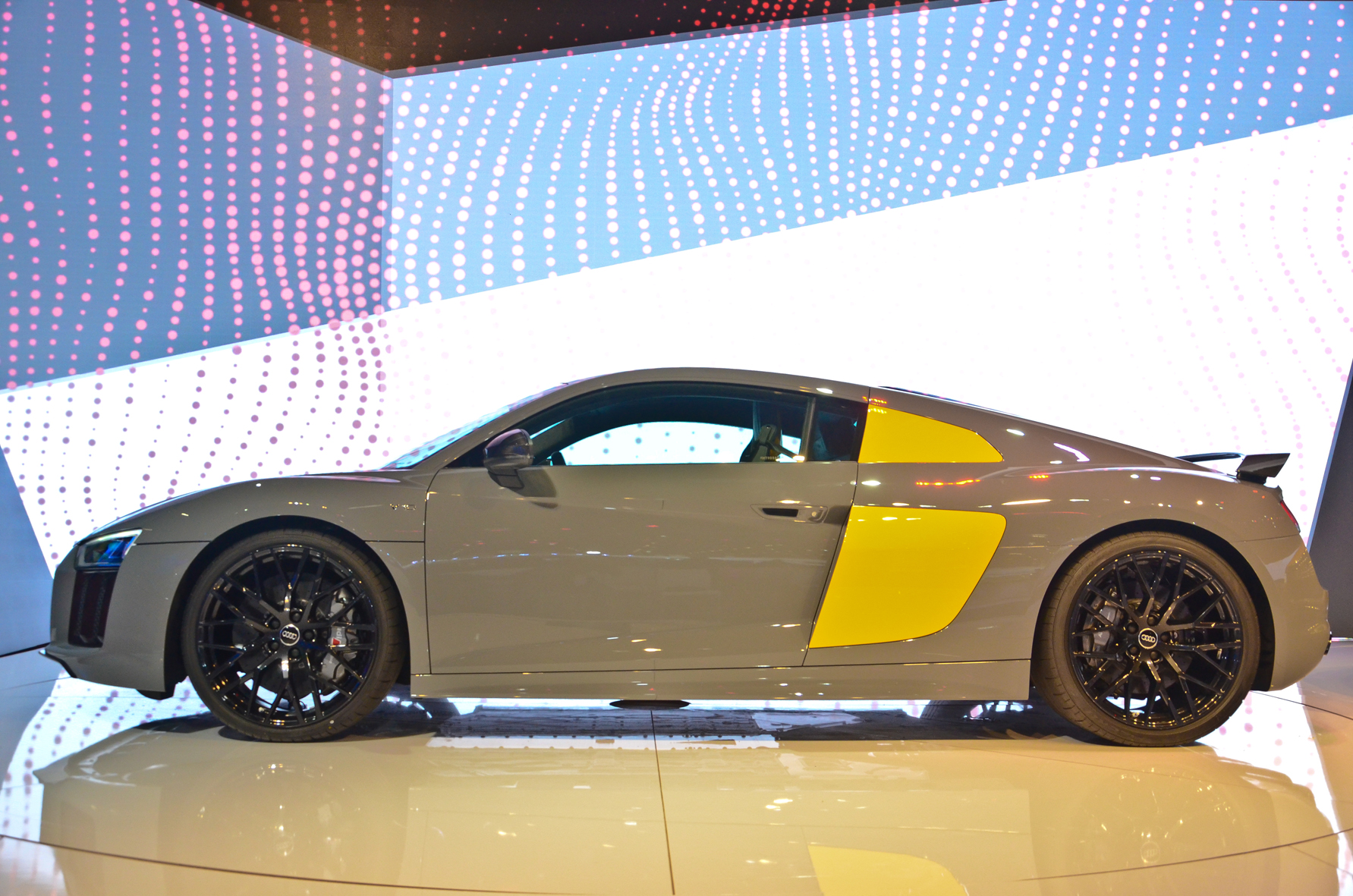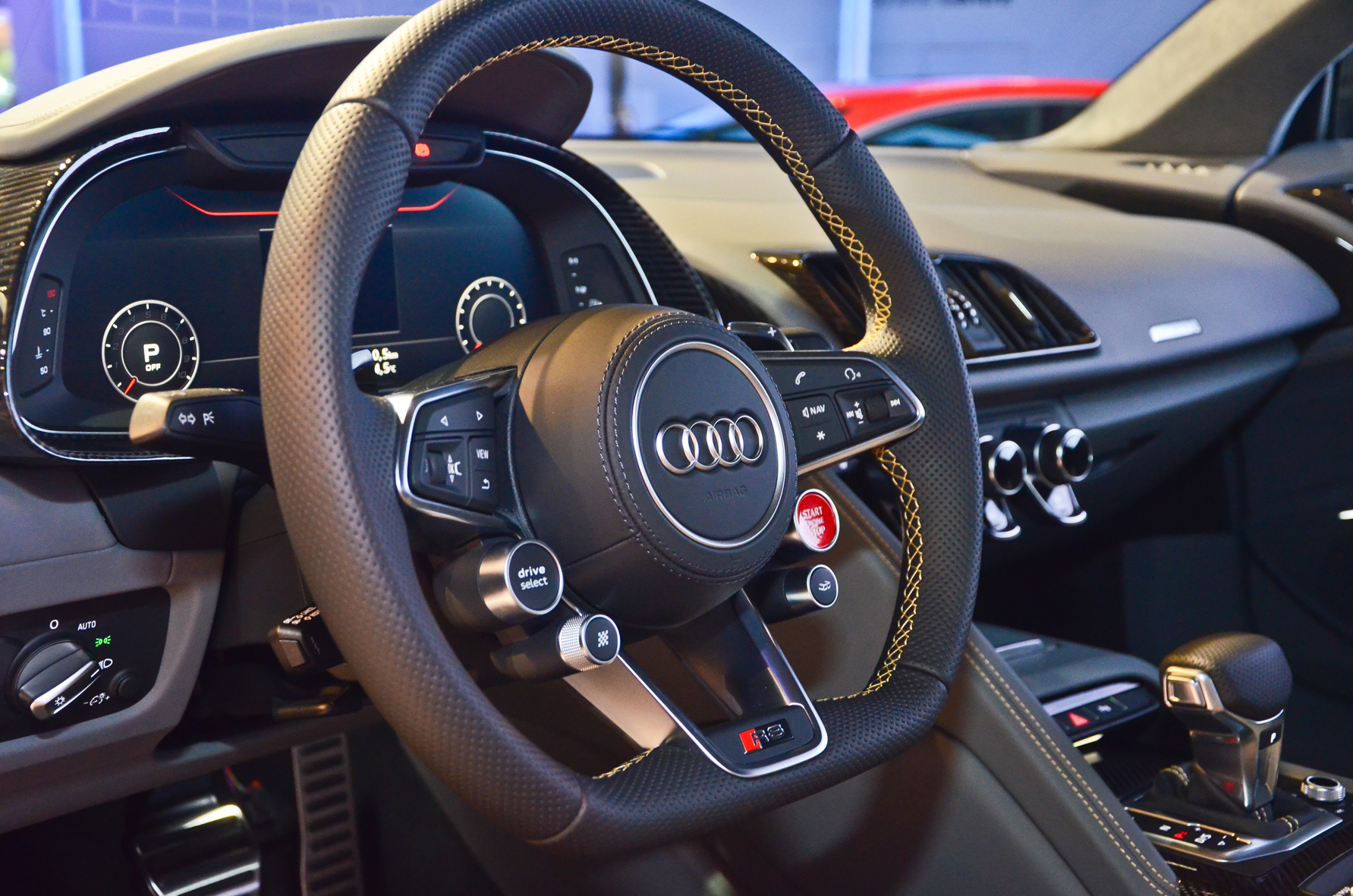 Em um cinza escuro (mesmo da RS6 Avant utilizada no Flying Lap) com detalhes em amarelo, o R8 Coupé V10 Plus presente na capital paulista até domingo (20), quando termina o salão, é equipado com motor 5.2 de dez cilindros em ‘V’ (aspirado e com injeção direta de combustível) capaz de gerar 610 cv de potência a elásticos 8.250 rpm e torque de 57,1 kgf.m a 6.500 giros. De acordo com a fabricante, a aceleração de 0 a 100 km/h acontece em apenas 3,2 segundos e a velocidade máxima é de 310 km/h.
