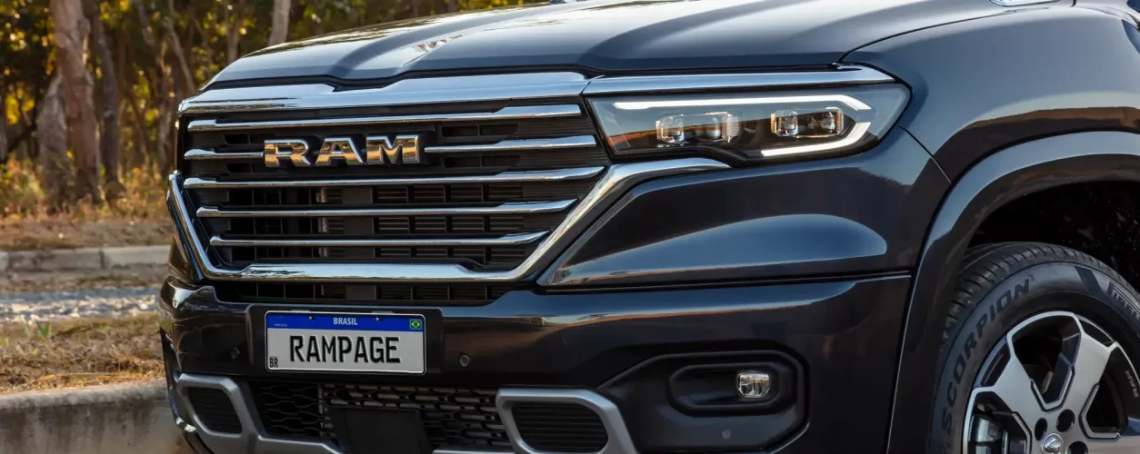 A Ram Rampage é um dos grandes lançamentos do mercado brasileiro em 2023. Fabricada em Goiana (PE) e desenvolvida para atender aos mercados da região da América Latina, a “brutinha” é oferecida em três opções de acabamento (Laramie, Rebel e R/T) e com duas opções de motor: 2.0 turbo de quatro cilindros (a gasolina, apenas), que desenvolve 272 cv de potência e 40,8 kgf.m de torque; e 2.0 turbodiesel, também de quatro cilindros, mas que entrega 170 cv e 38,8 kgf.m.
