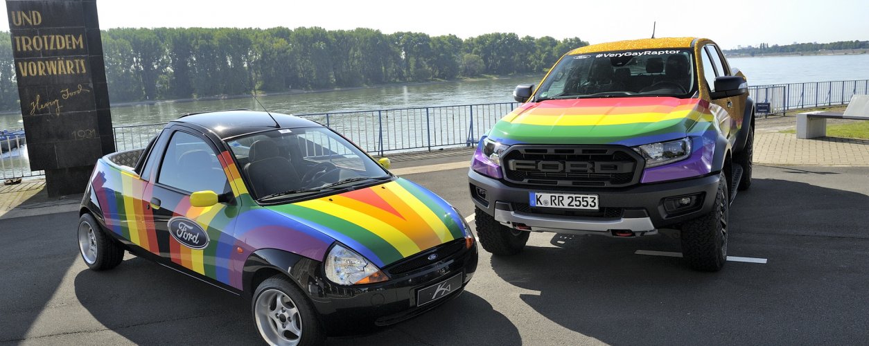 Enquanto nos Estados Unidos a Ford ainda faz questão de ligar a imagem de suas picapes à virilidade masculina, na Alemanha a filial da marca decidiu usar uma Ford Ranger Raptor para celebrar a Parada LGBTQIA+ da cidade de Colônia, realizada no último fim de semana.