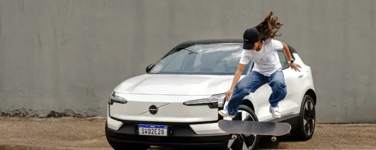 Embaixadora da Volvo do Brasil, a skatista Rayssa Leal será personagem da campanha do EX30 Ultra Twin Motor, nova configuração do SUV de entrada da marca sueca e que acaba de ser lançada no mercado brasileiro por R$ 309.950.