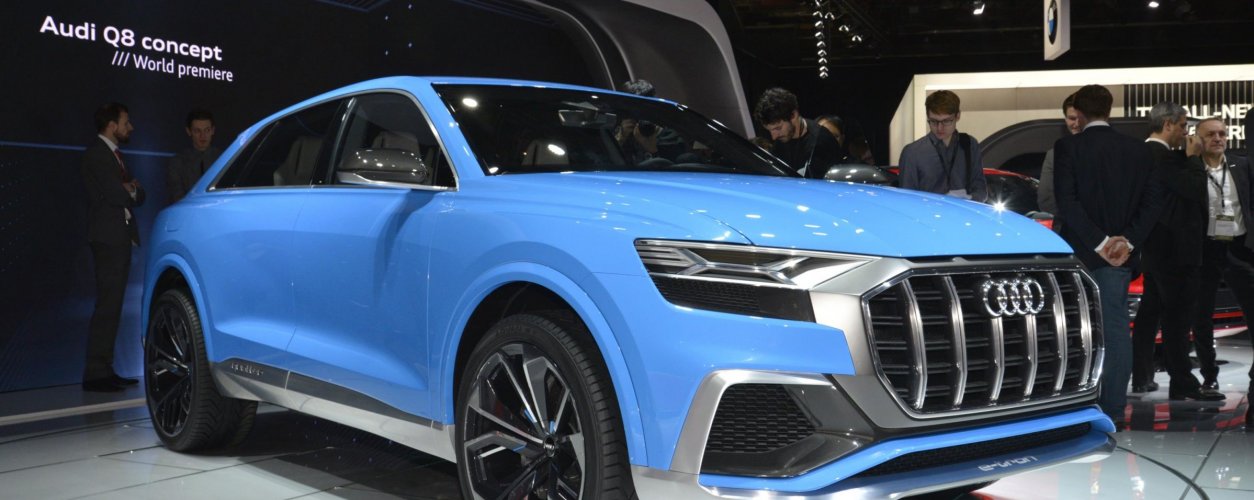 Já o design deve ser baseado no Q8 Concept (foto), apresentado em janeiro, no Salão de Detroit. O destaque vai para a identidade visual composto por grade trapezoidal com barras verticais e faróis com tecnologia a laser.
