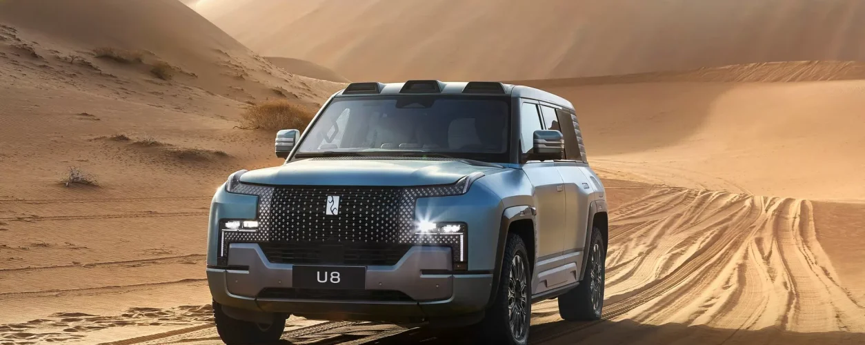 A classificação "IP68" faz do U8 um SUV praticamente à prova d'água e capaz até de flutuar ou se movimentar como um barco por até 30 minutos. O modelo também tem suspensão hidráulica adaptativa DiSUs-X, que pode fazer com que o carro "pule" obstáculos encontrados pelo caminho.