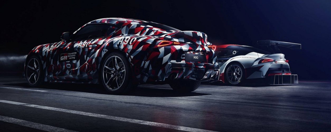 Assim como o "teaser" anterior, que mostra parte da dianteira e a lateral, o novo, da traseira, mostra o carro coberto por camuflagem. Na foto recém divulgada, o Supra aparece ao lado do conceito GR Supra Racing (foto abaixo), a versão do cupê para as pistas.