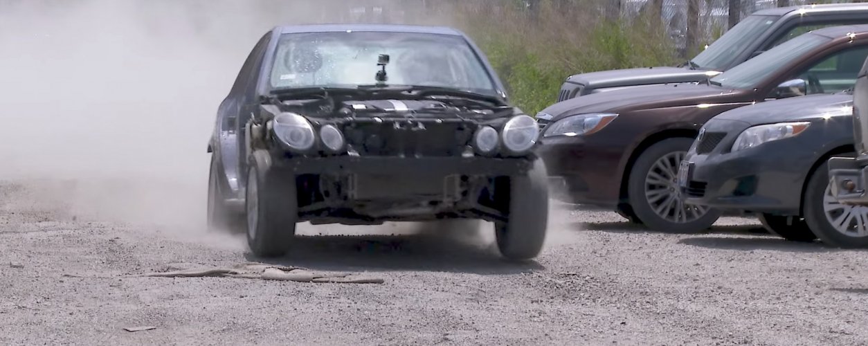 A equipe do WP apenas trocou os amortecedores e removeu todos os painéis externos do veículo, inclusive os para-lamas e as portas, com o intuito de mostrar como as suspensões reagem quando são exigidas em condições extremas. O sedã foi acelerado em uma via como a nossa, que existe em um país rico como os Estados Unidos: sem alfalto e com muitos e grandes buracos na via.