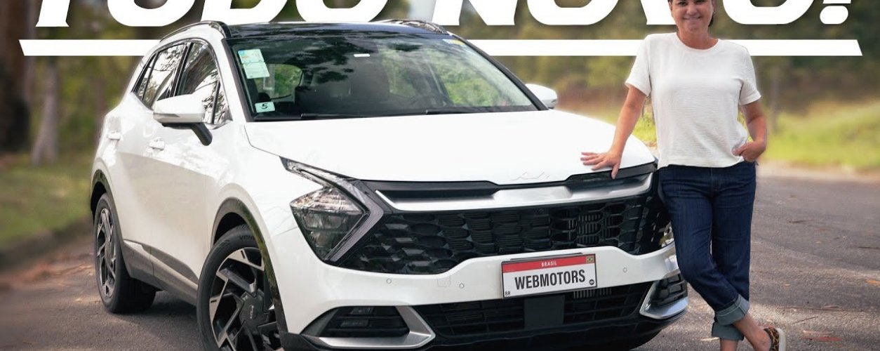Este é o novo Kia Sportage EX Prestige. Tudo mudou no SUV da marca coreana, que agora é um híbrido-leve. O Design é o ponto alto do SUV. Na frente, a grade e faróis indicam toda a ousadia da marca coreana. Na lateral, o destaque fica para as enormes rodas de 19 polegadas em preto e cromado. Na traseira, um design limpo e robusto assina o projeto.