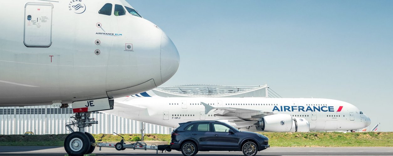 Um Cayenne Turbo S fez exatamente isso no vídeo produzido pela Porsche no Aeroporto Charles de Gaulle, em Paris, na França. Nas imagens, um Cayenne Turbo S, dotado de tração integral, consegue puxar vagarosamente a aeronave da Air France, que é retirada parcialmente do hangar.