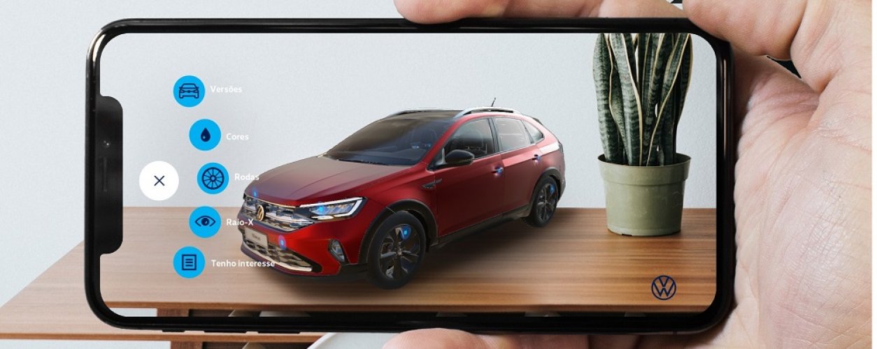 No embalo do lançamento do Nivus, a Volkswagen aproveita para mostrar sua nova ferramenta digital para propagandear seu novo modelo e - futuramente - outros carros da marca. Em um aplicativo de realidade aumentada, é possível ver detalhes do SUV compacto, além de configurar o utilitário.