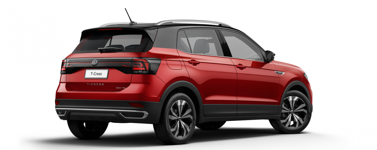 Visualmente, a única mudança é o novo logotipo da Volkswagen na grade frontal que estreou por aqui no Nivus. Do modelo menor, o T-Cross passa a oferecer também a pintura vermelho Sunset (R$ 1.920) desde a versão 200 TSI.