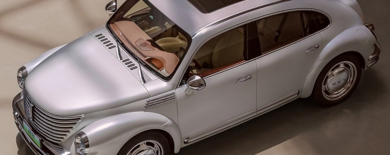 Já a traseira tem as famosas linhas do Fusca. E existe uma explicação bem simples para isso. É que o Yuanmeng é a versão da WEY para o Punk Cat, modelo elétrico criado inicialmente para a ORA (outra das marcas da Great Wall Motors) que, além da traseira, tem também a dianteira fortemente inspirado na do clássico Volkswagen.