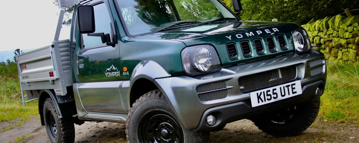 Sediada em West Yorkshire, na Inglaterra, a Yomper 4x4 criou uma picape compacta baseada da geração anterior do Jimny. O projeto aproveita o chassi de longarinas do pequeno utilitário para alongar o veículo.