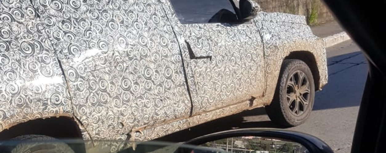 Pode até não parecer, mas debaixo desta camuflagem está na nova geração da Fiat Strada. Prevista para ser lançada em 2020, a picape foi flagrada em Minas Gerais, com menos disfarces.