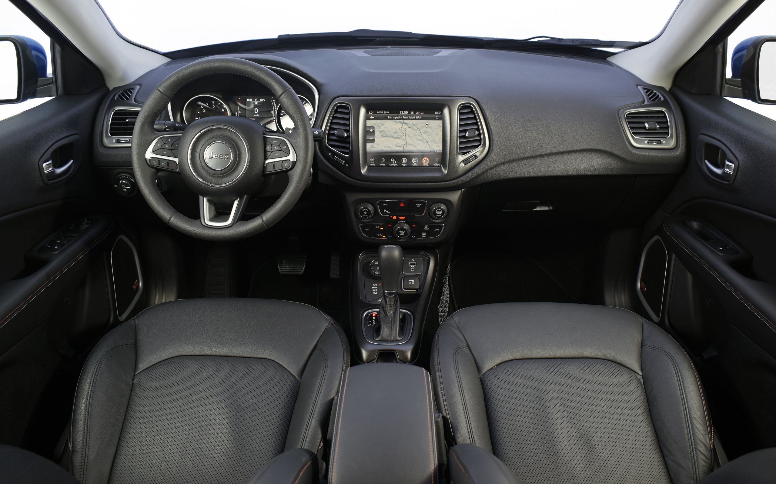 O pacote de equipamentos de série do Compass agrada: ar condicionado de duas zonas, câmera de ré, sensor de estacionamento traseiro, travas e vidros elétricos, freios com ABS (antitravamento) e EBD (distribuição eletrônica da força de frenagem), airbag duplo frontal, Isofix para fixação da cadeirinha infantil, auxiliar de partida em rampa, rodas de liga leve de 18 polegadas, controlador e limitador de velocidade. Destaque para a central multimídia com tela de 8,4 polegadas sensível ao toque e funções como navegação por GPS – ponto negativo é que o sistema ainda não é compatível com Android Auto e Apple CarPlay.
