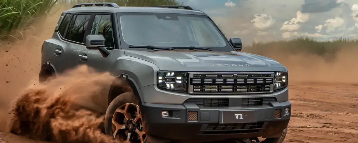 O Jetour T1 estreia como um dos três lançamentos da marca chinesa no mercado brasileiro. Tem a proposta de combinar porte de SUV médio com motorização híbrida e visual inspirado no de SUVs off-road.
